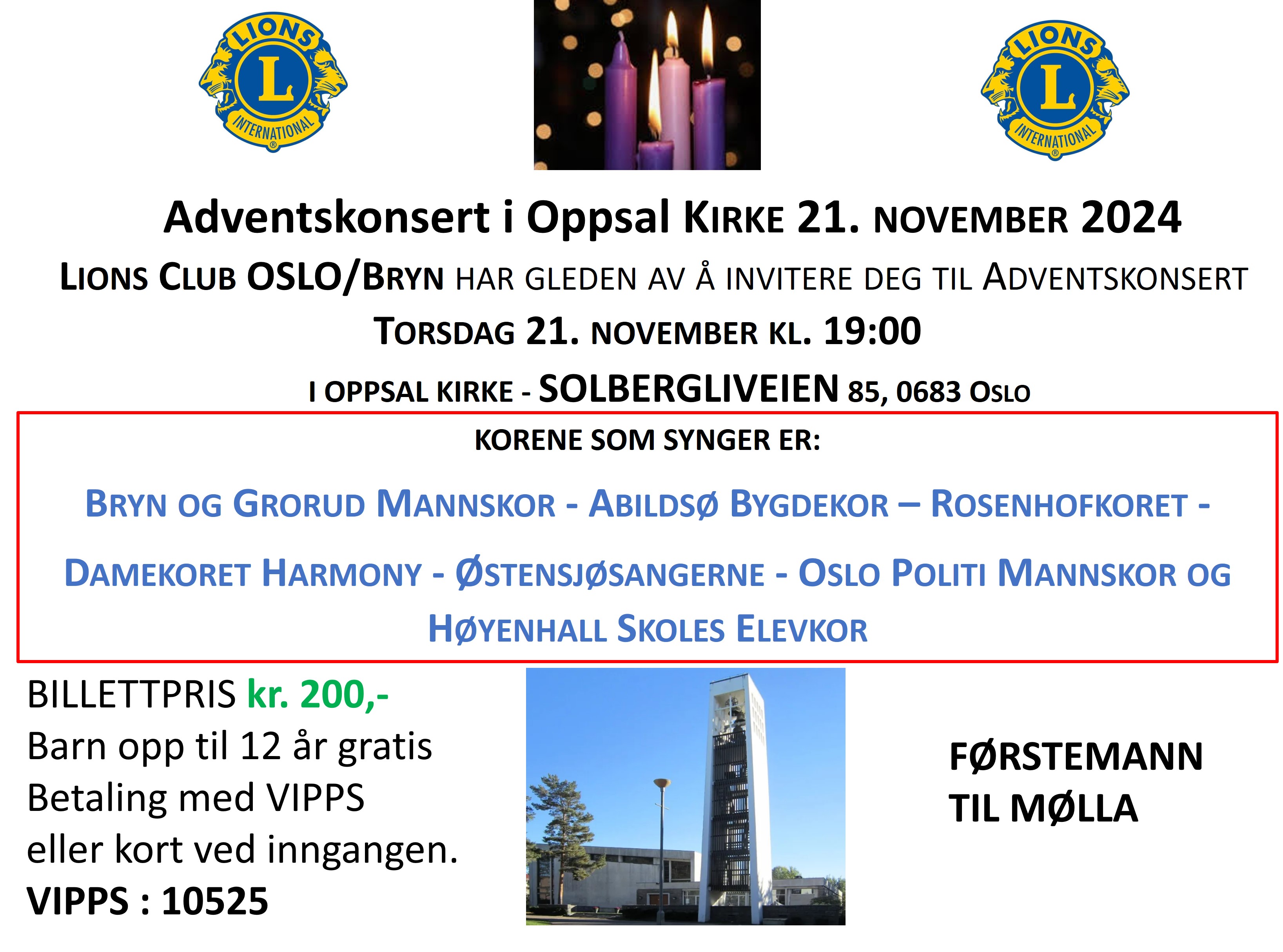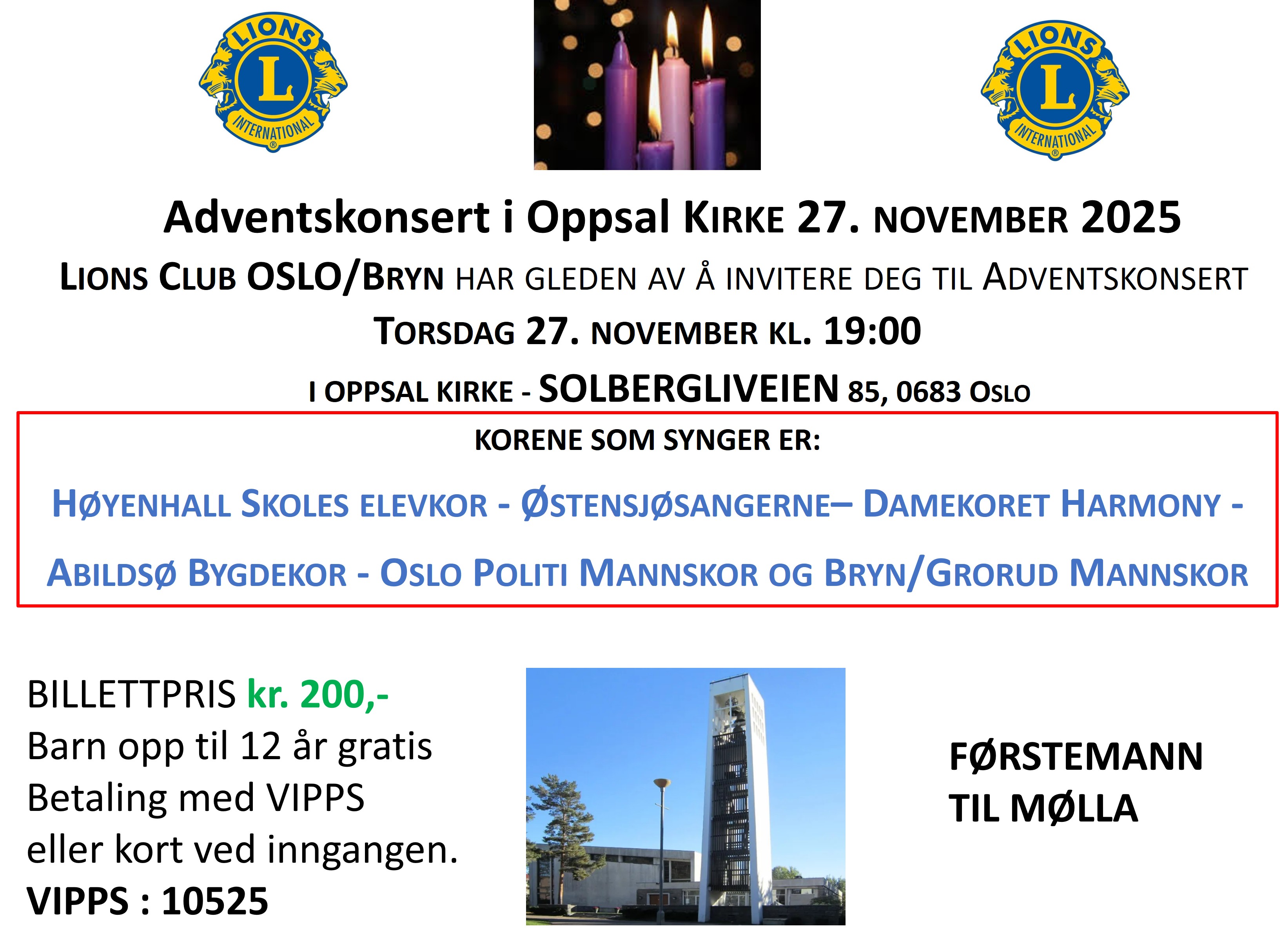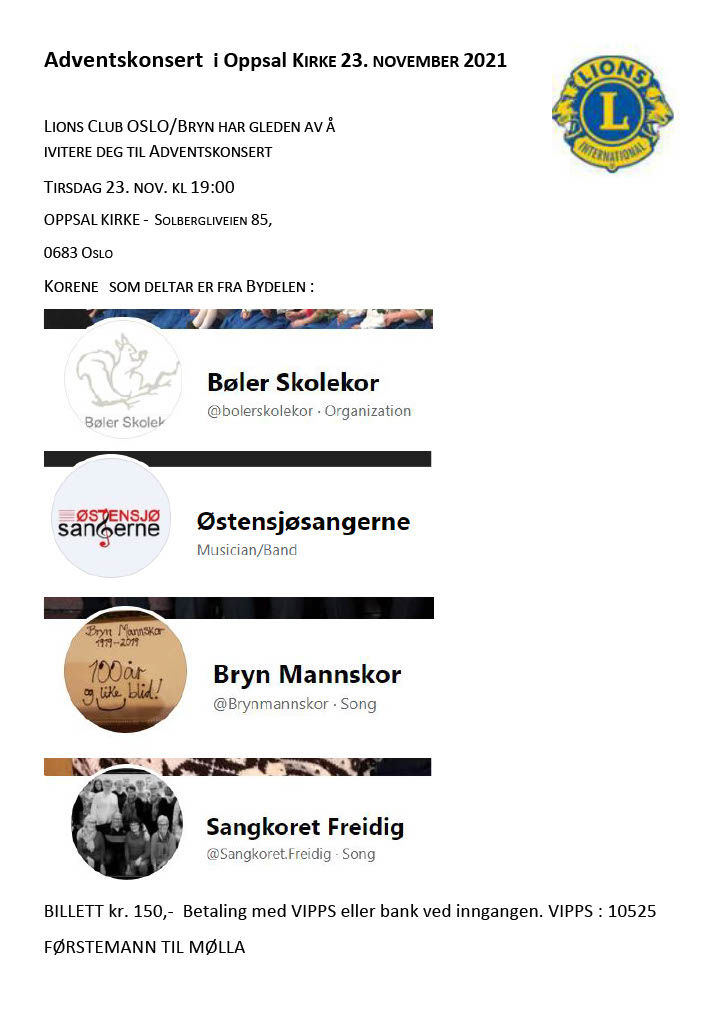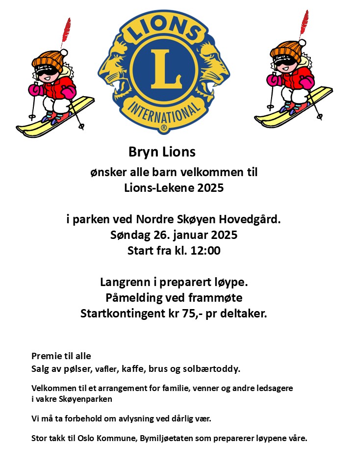 Lions Club Oslo/Bryn arrangerer også i år Skøyen kvelden på Nordre Skøyen hovedgård torsdag 22. mai kl. 17:30. Vel møtt til en hyggelig dag med lokale korps i Skøyeparken